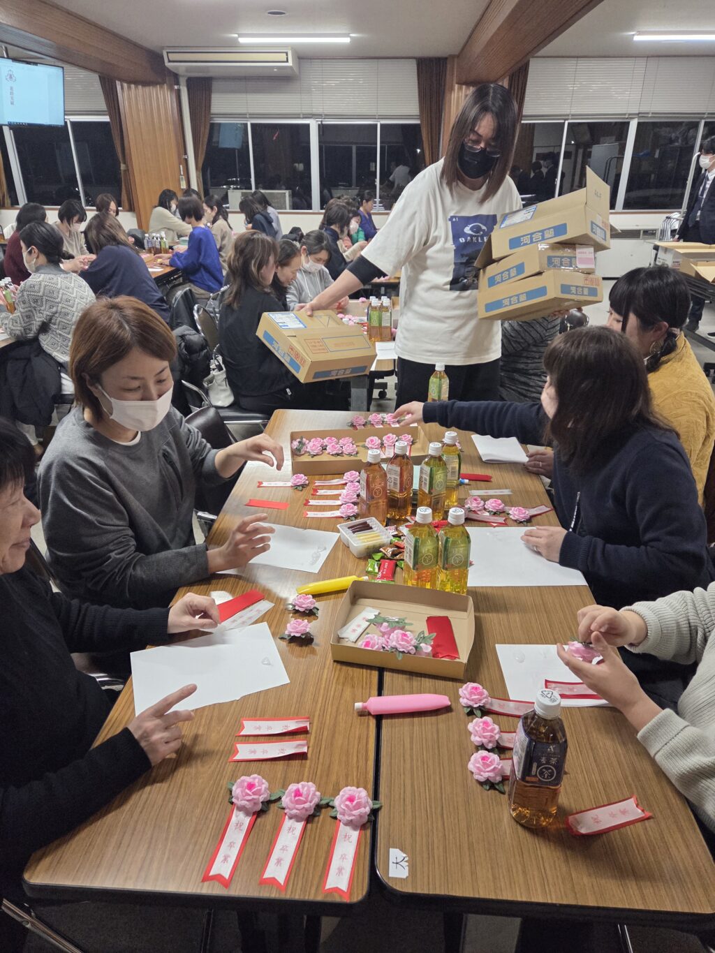 🌸花リボンづくりの様子 🌸会終了後に3年生四役の保護者の方々に花束の贈呈
