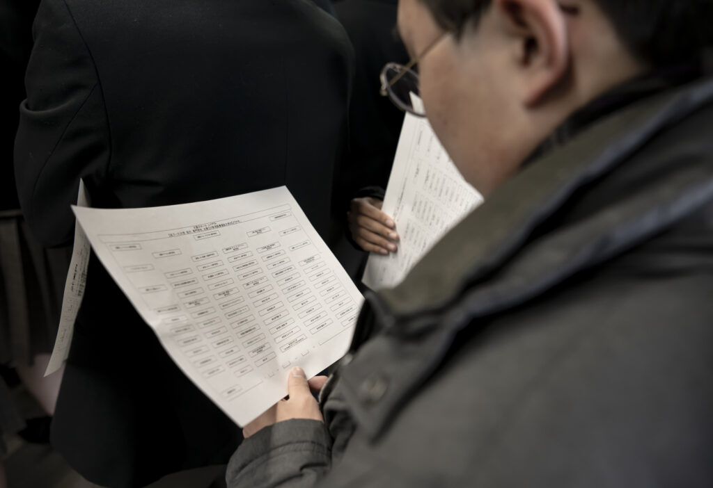 大学、専門学校や就職など、それぞれ興味のあるブースを選び、生徒たちは真剣なまなざしで話を聞き、メモをとりながら真剣に参加していました