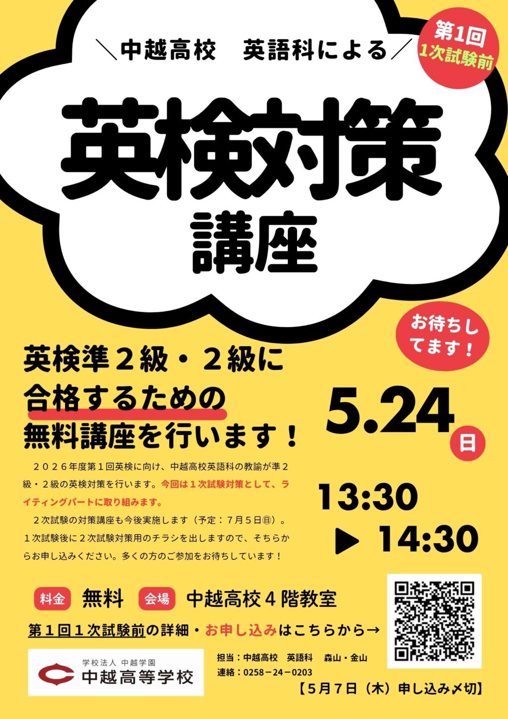 中学生対象「無料英検対策講座」のご案内📚